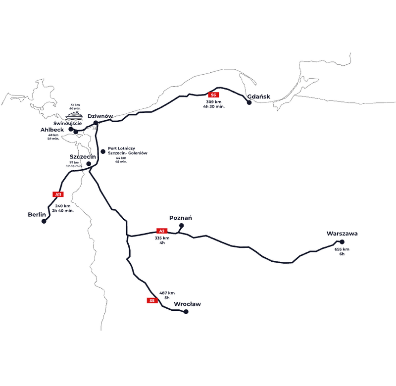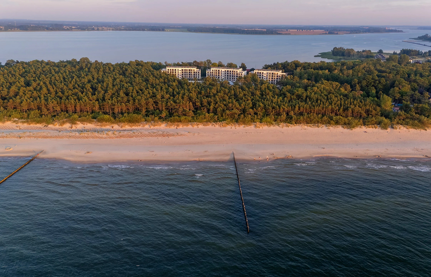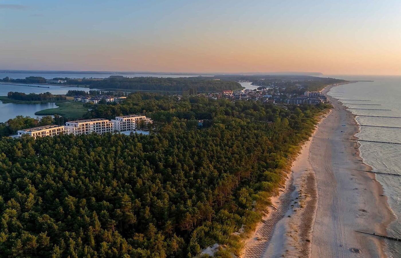 Inwestycja położona jest 60 metrów od szerokiej, piaszczystej plaży i 100 metrów od Zatoki Wrzosowskiej,